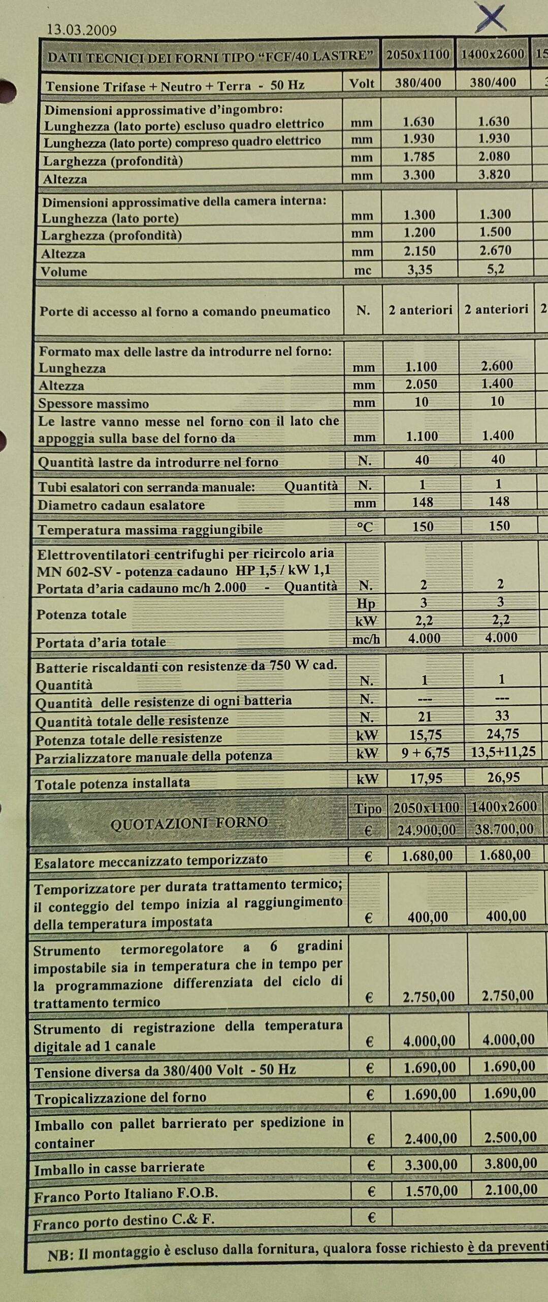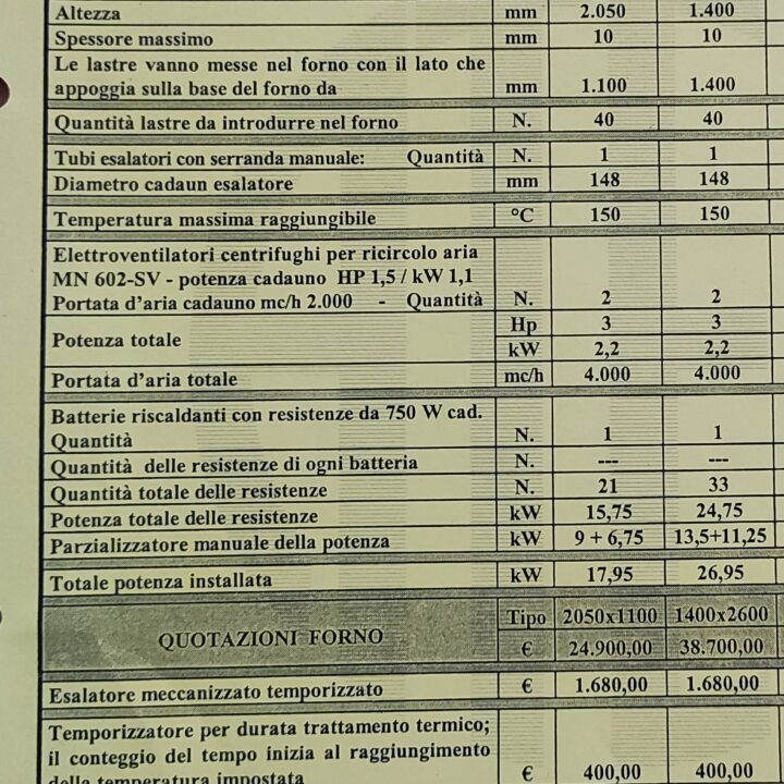 Forno da lastra 1400 x 2600 (larghezza interna da lastra a lastra 1240) 27Kw così fornito: