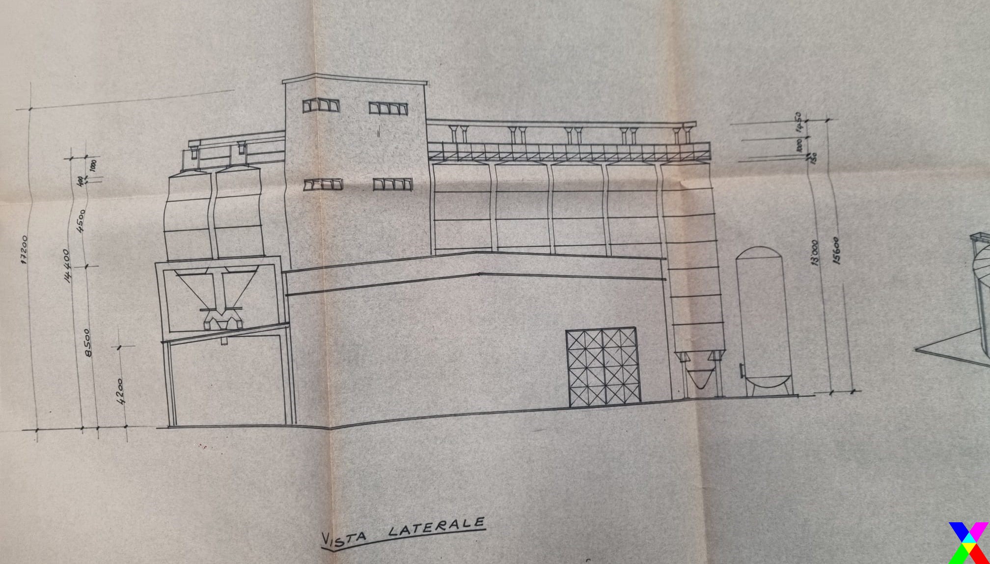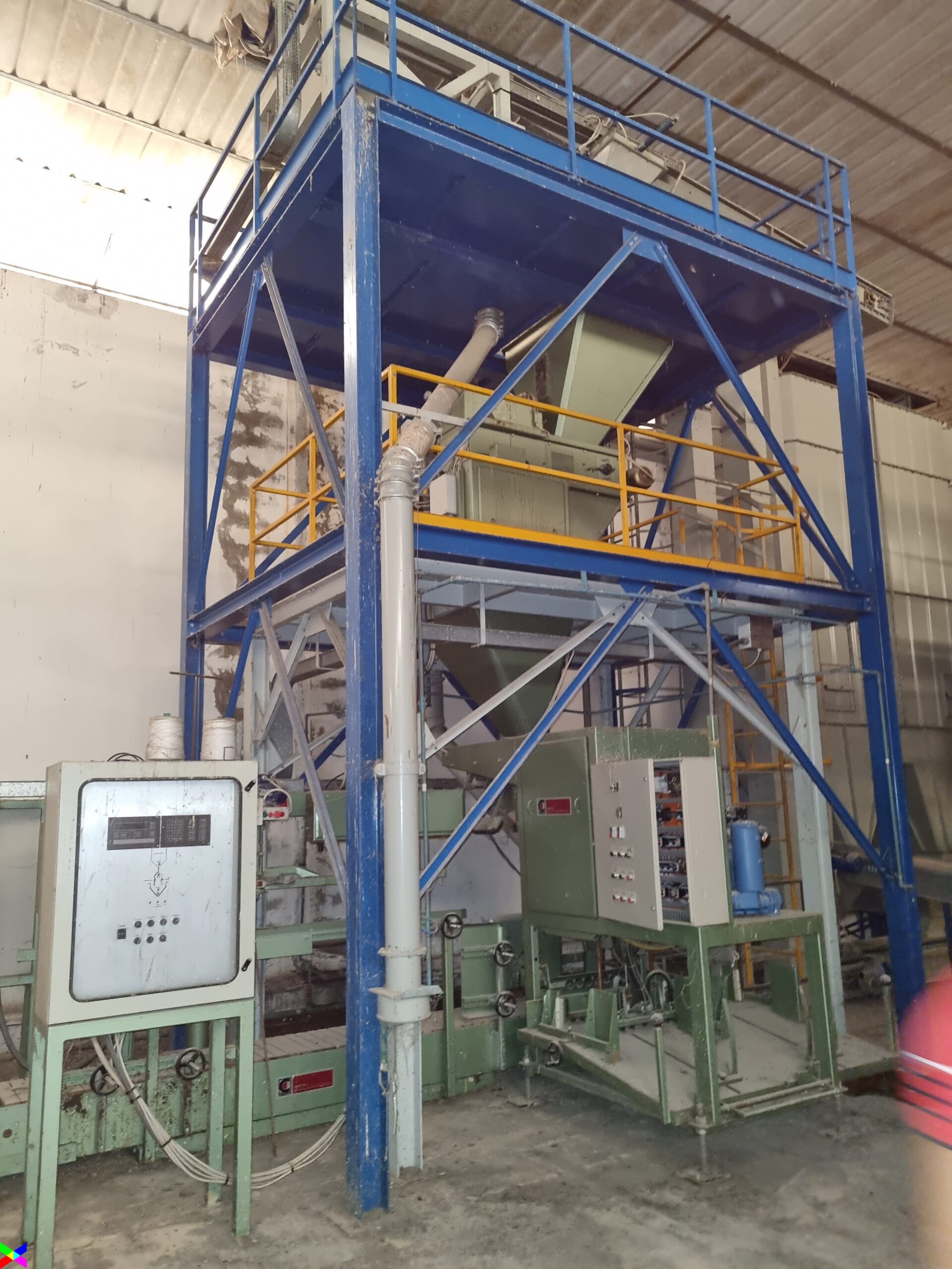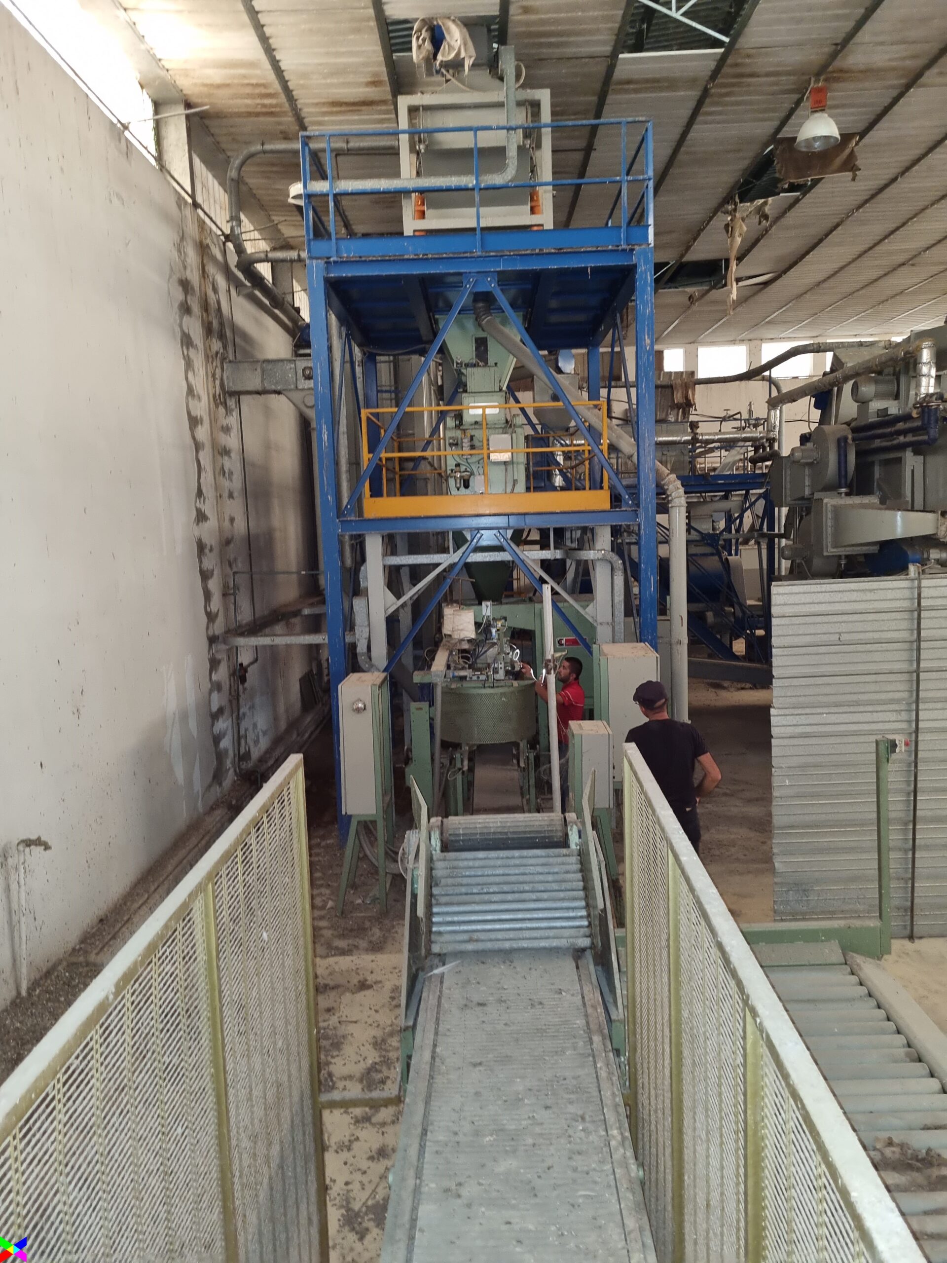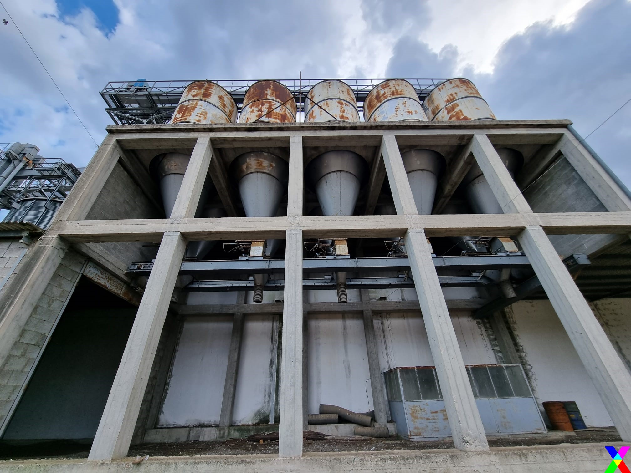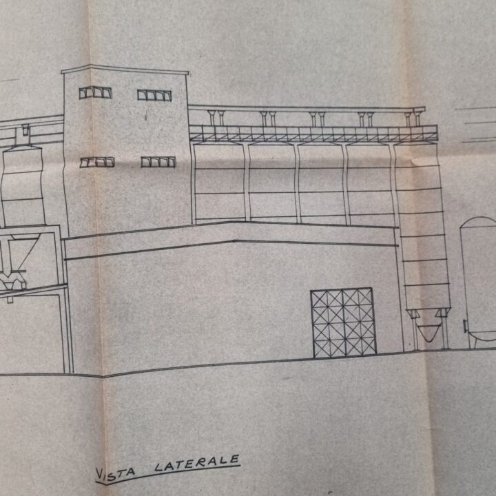 Le materie prime dai silos passano mediante nastri nella parte alta della struttura in cemento armato a sviluppo verticale. La sua altezza è di 17 m, la pianta è rettangolare di 7,50 m x 6,50.