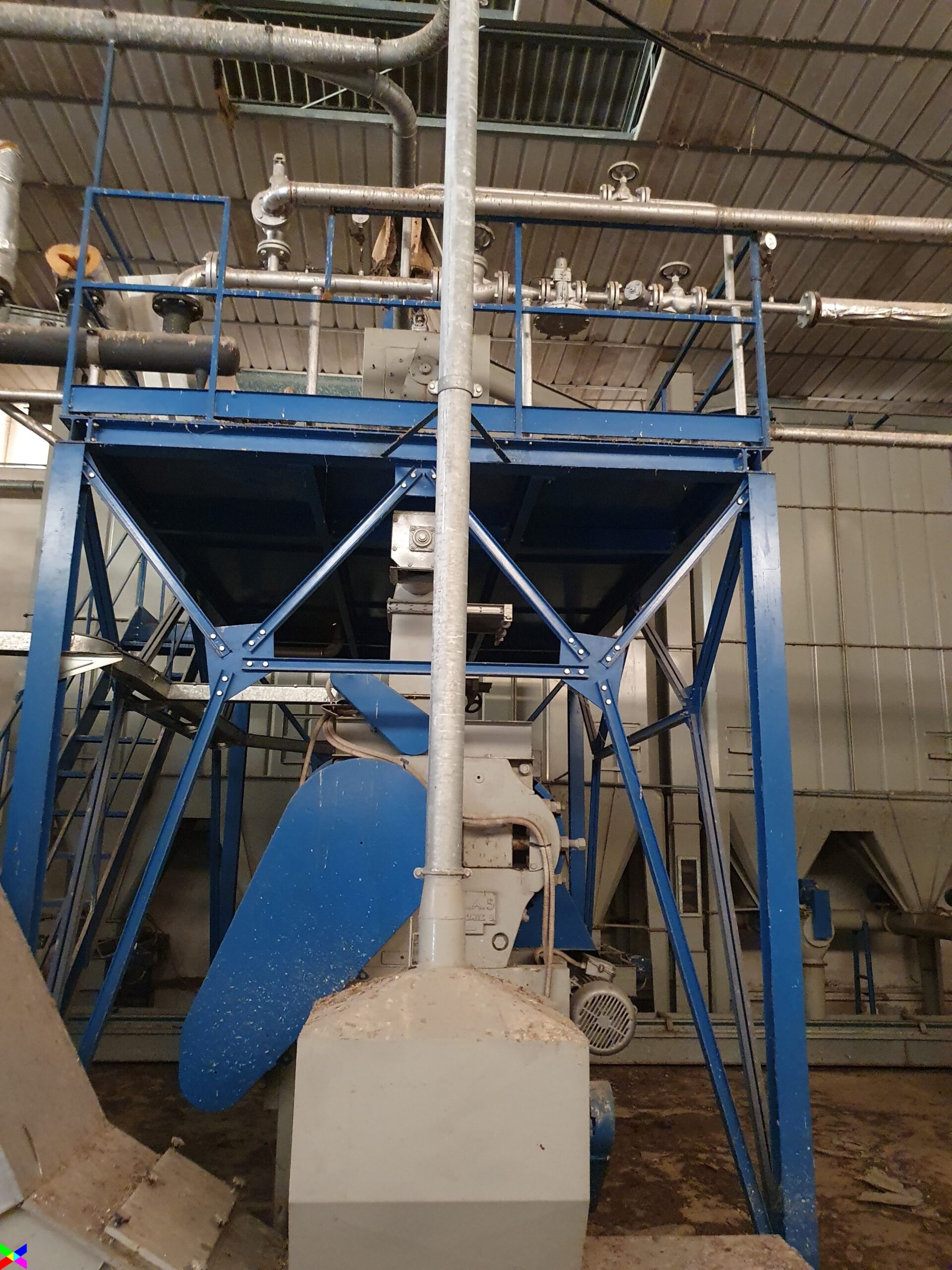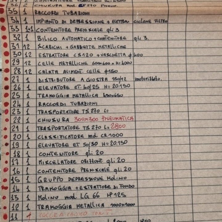 I macchinari, le attrezzature e l’intero impianto verticale di produzione e lavorazione sono stati realizzati negli anni 90 da Azienda leader nel settore pertinente e ancora in forte attività: di fatto il mangimificio non è mai entrato in funzione per questioni burocratiche; per detto motivo è definibile allo stato del nuovo.