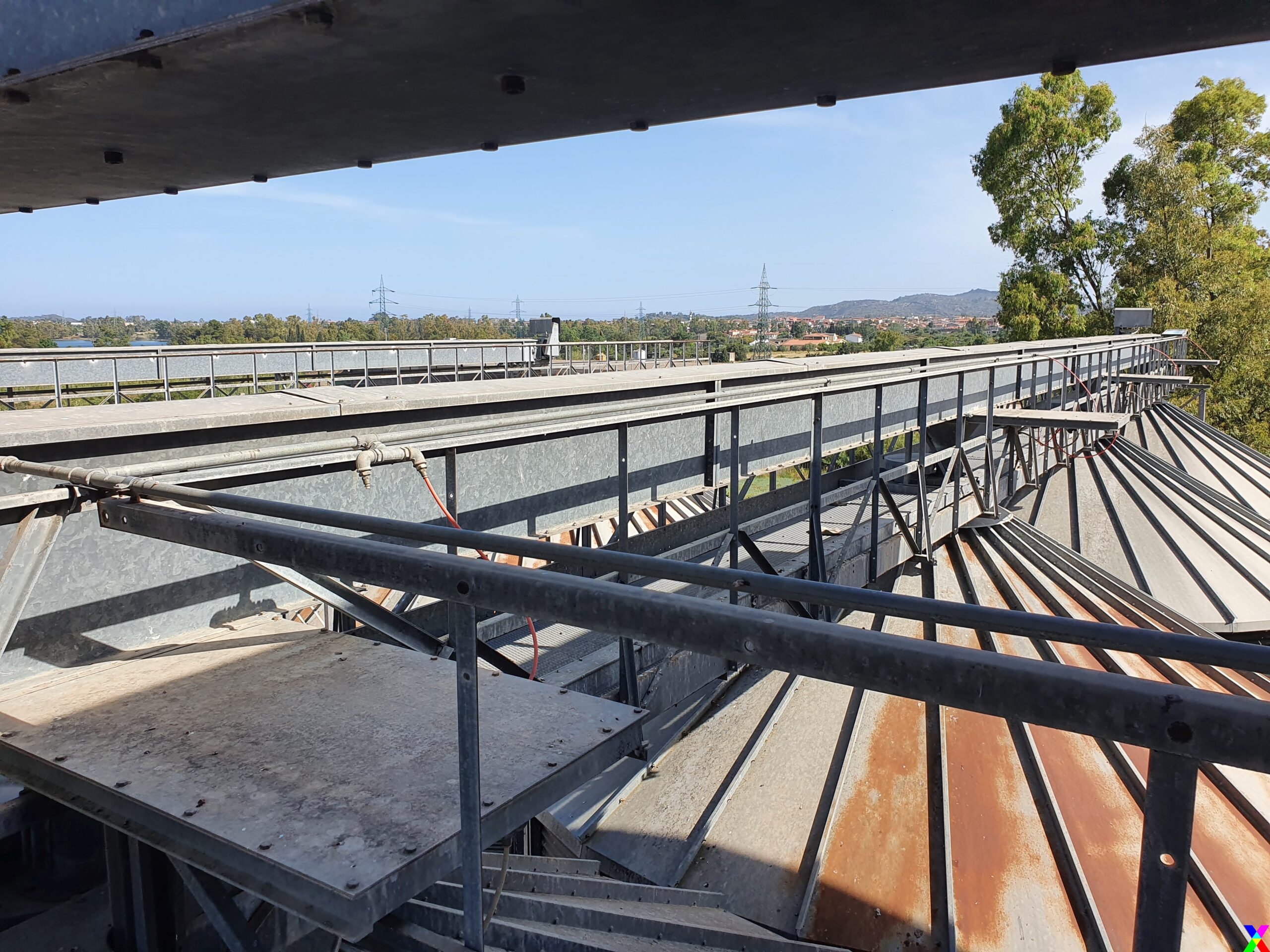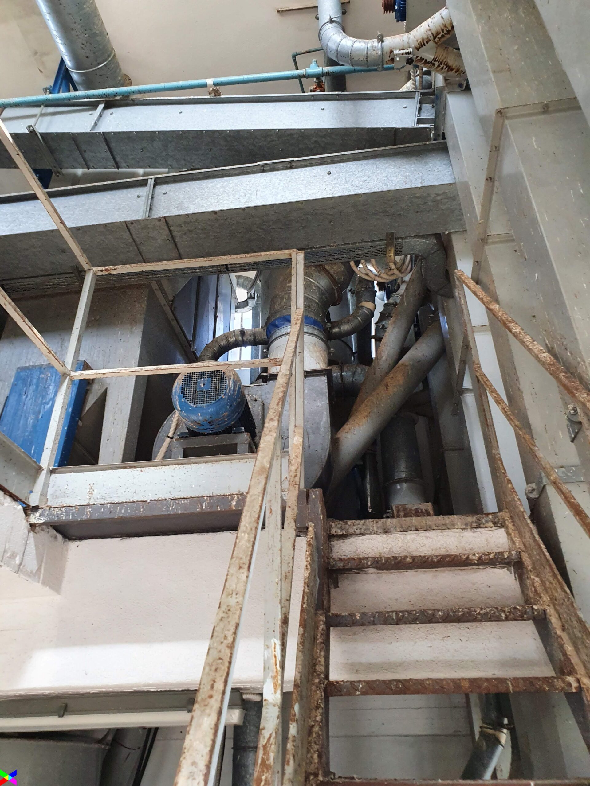 Nel secondo locale tecnico è installato un compressore rotativo silenziato a marchio “Rotar” per la produzione dell’aria compressa necessaria ai servocomandi dell’intero impianto avente le seguenti caratteristiche tecniche: modello=ISC10; V 380 – 3; Hz 50; kW 11; Hp 15; A 23; aria resa-F-A.D. 1,40 mc/min; pressione max=10 bar; serbatoio da 10 litri.