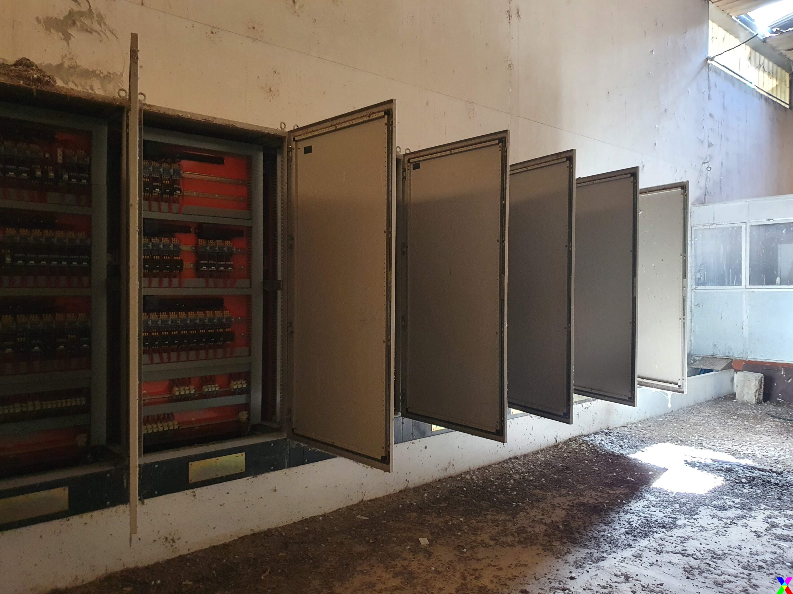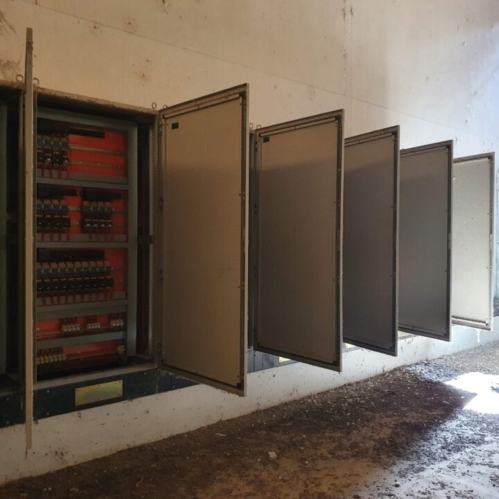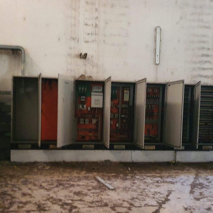 In the second technical room there is a silenced rotary compressor with the “Rotar” brand for the production of the compressed air necessary for the servos of the entire system with the following technical characteristics: model = ISC10; V 380 – 3; Hz 50; kW 11; Hp 15; A 23; air output-F-A.D. 1.40 mc/min; max pressure=10 bar; 10 liter tank.