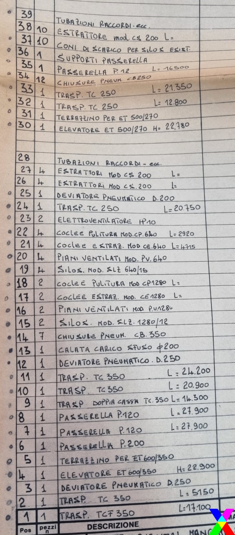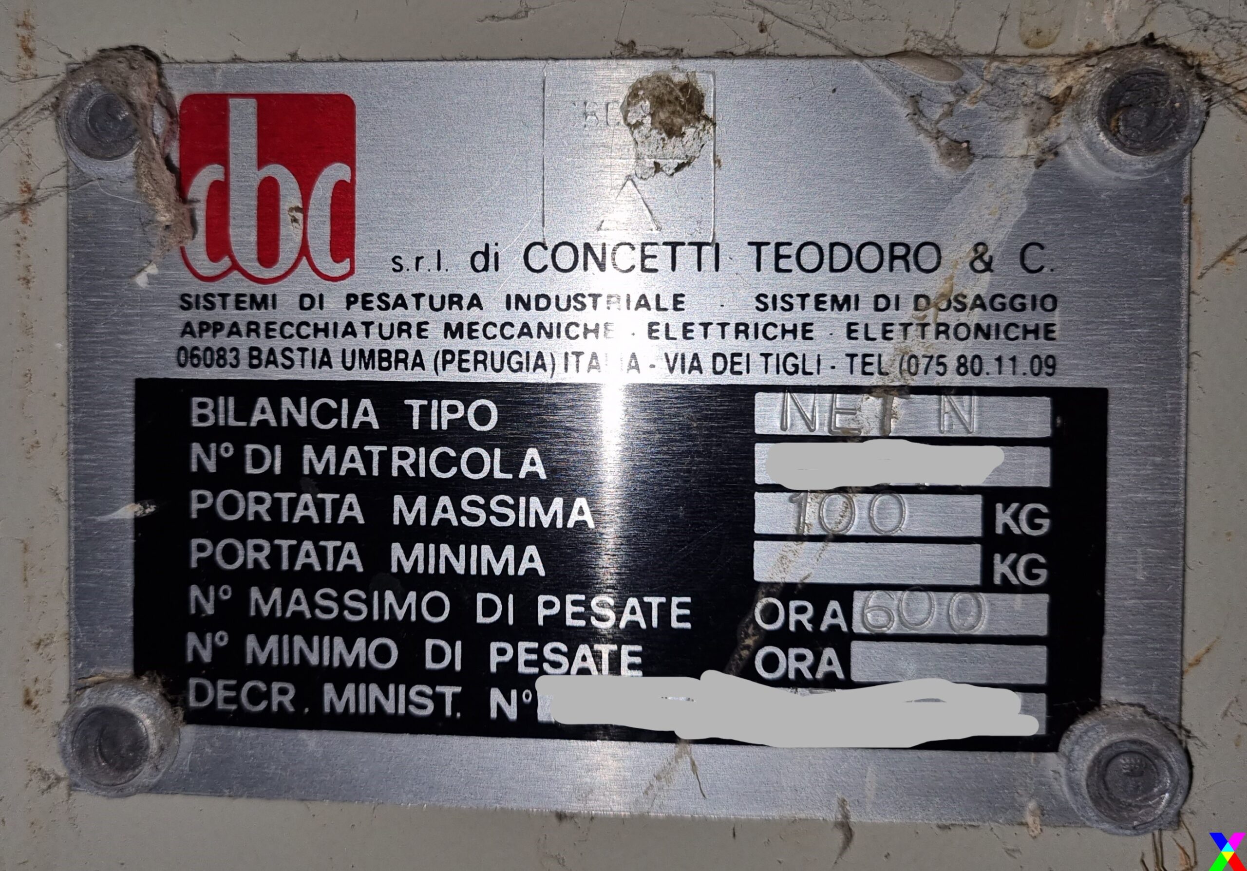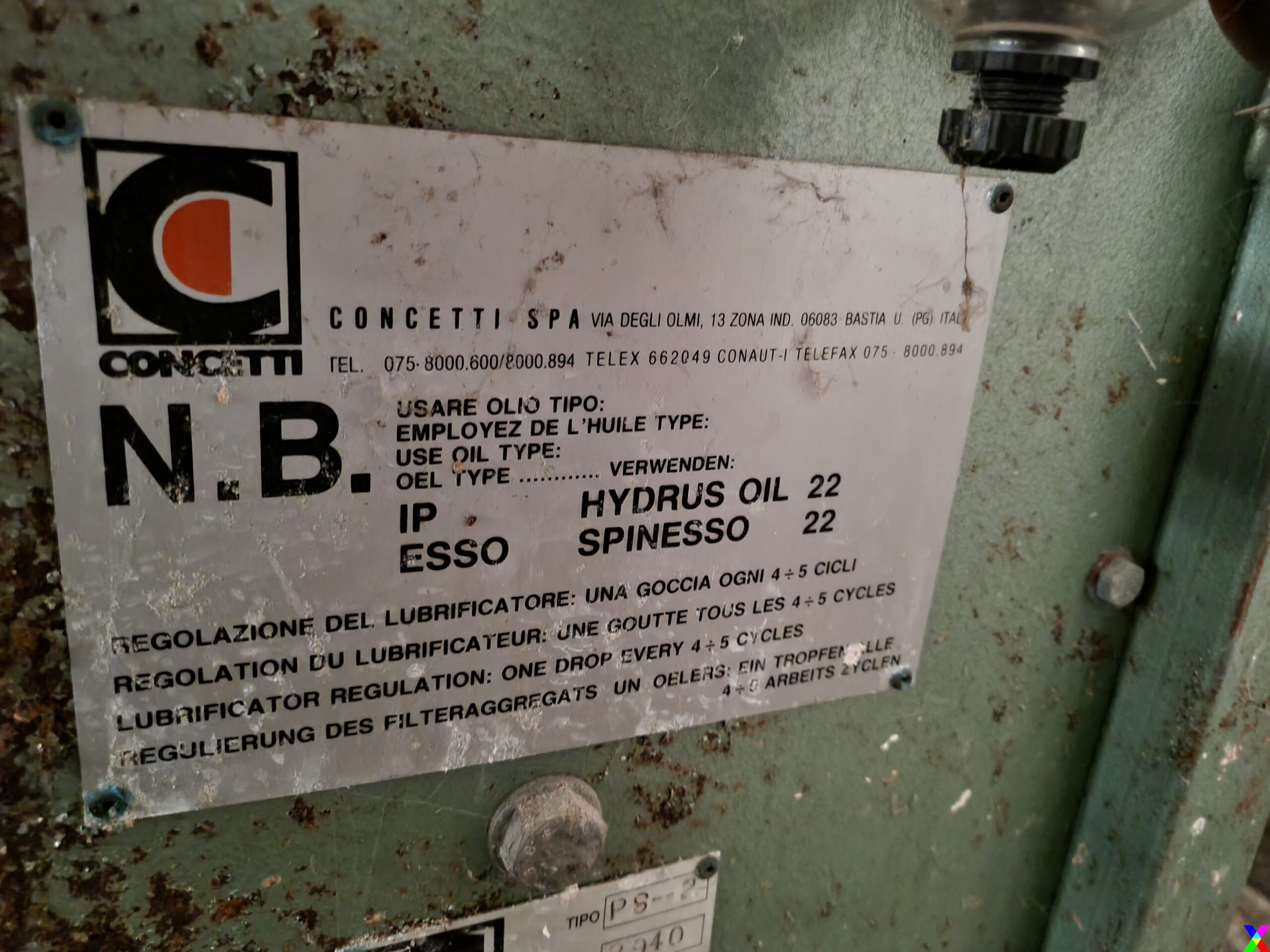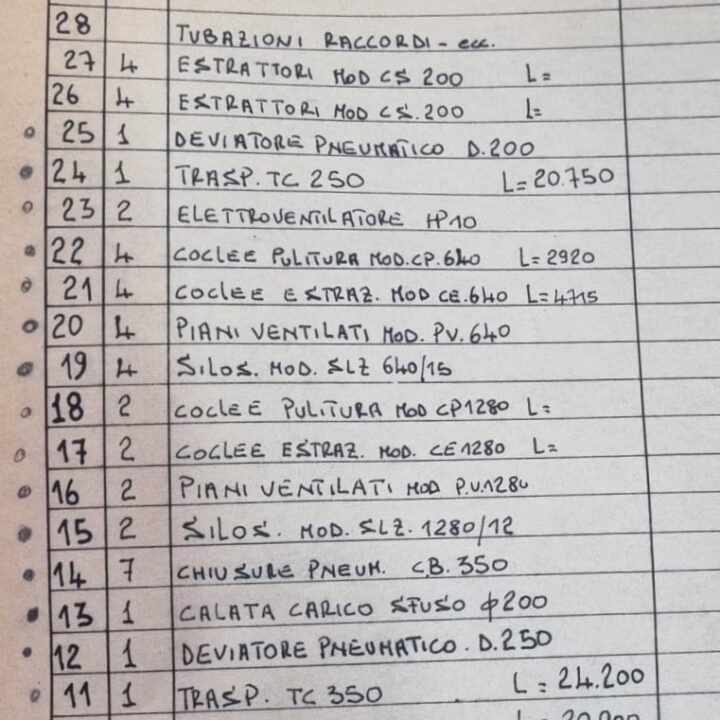 Visto esser passato un trentennio dalla realizzazione, alcuni elementi potrebbero esser ammalorati, così come il gruppo compressori da litri 1000 (che è escluso); sono da tener in considerazione.