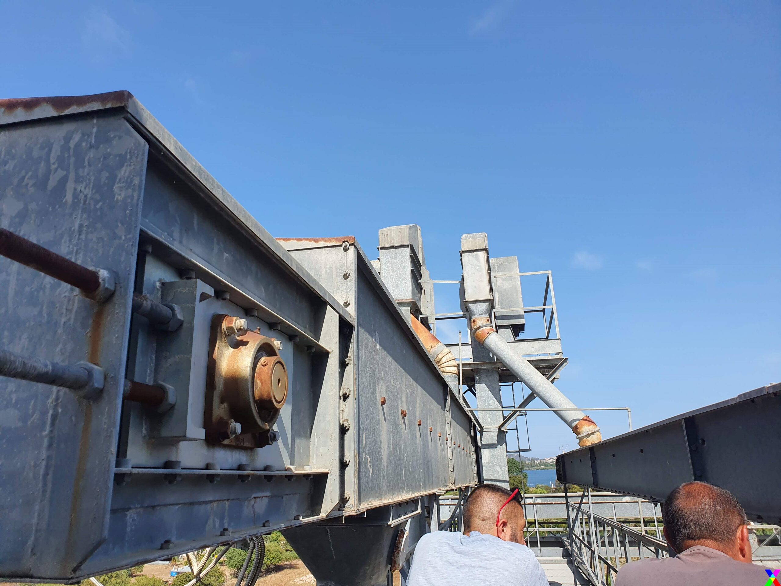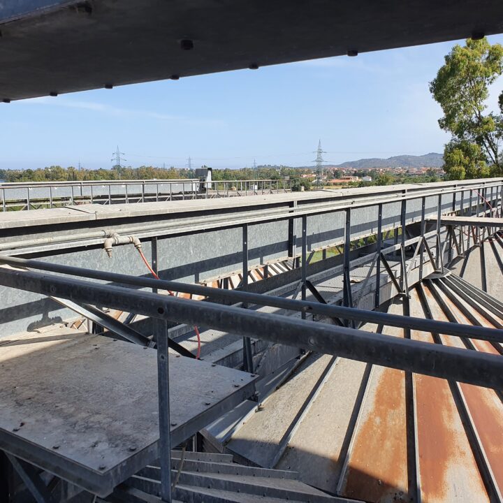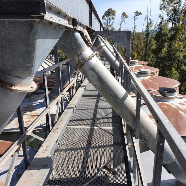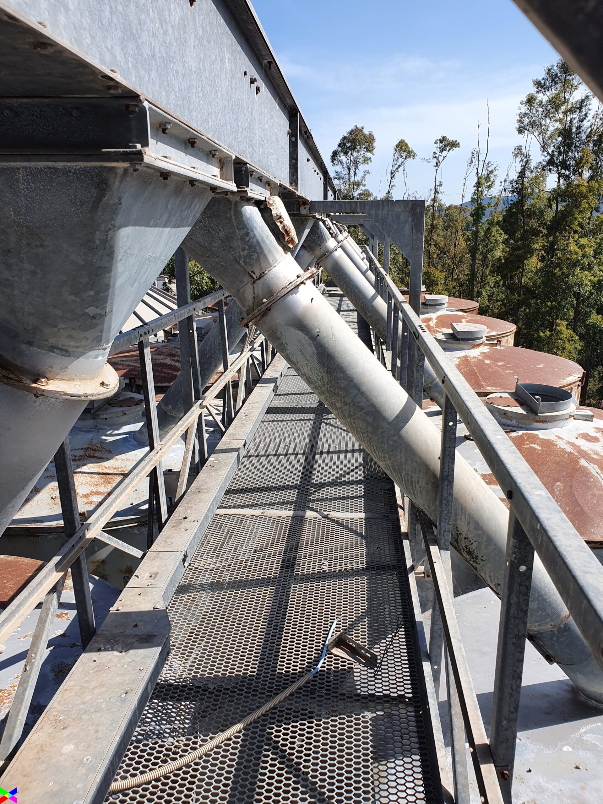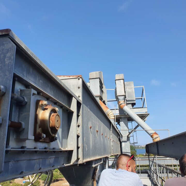 The raw materials from the silos pass through belts in the upper part of the vertical reinforced concrete structure. Its height is 17 m, the plan is rectangular of 7.50 m x 6.50.
