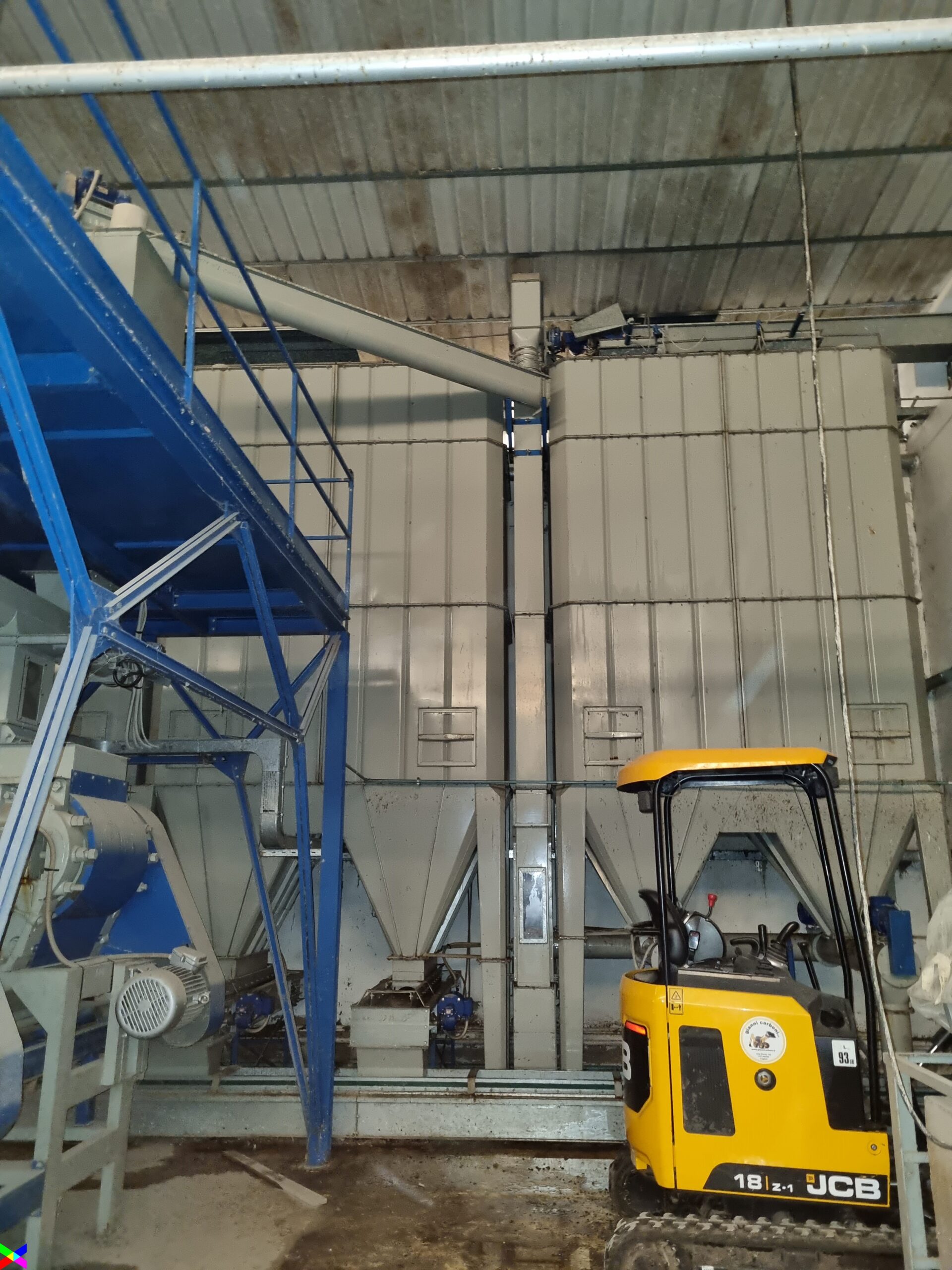 I silos metallici, di tipo cilindrico verticale, sono 16, con volumi variabili tra 70 e 1.350 mc. Il volume complessivo di stoccaggio è di mc 5.000.