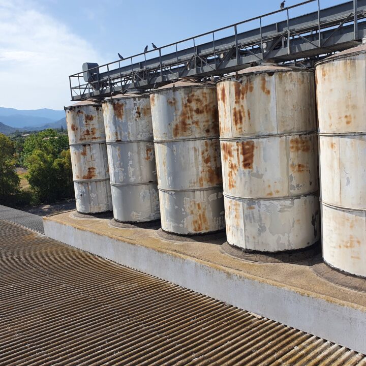 There are 16 metal silos, of the vertical cylindrical type, with volumes varying between 70 and 1,350 cubic meters. The total storage volume is 5,000 cubic meters.
