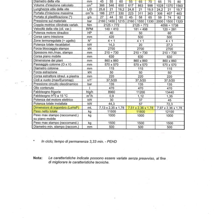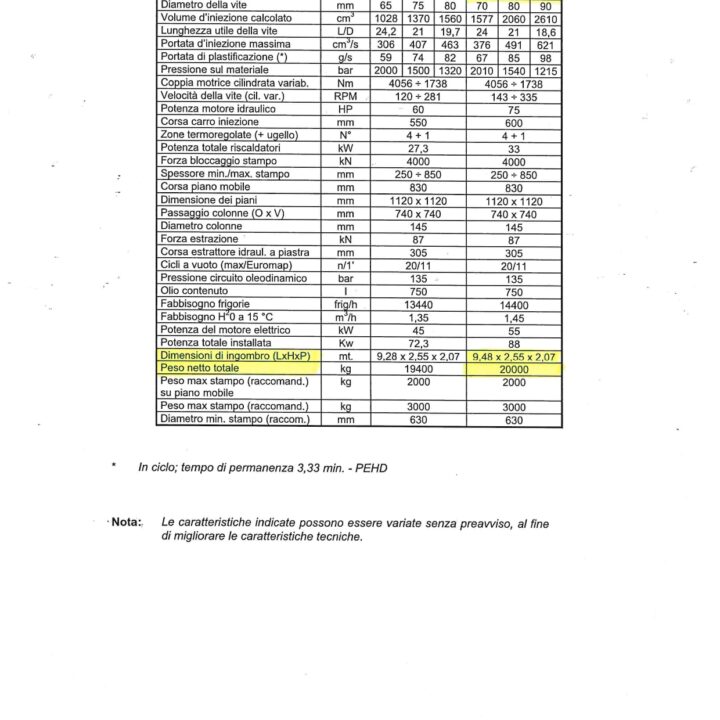 NB: sono SEMPRE disponibili altre presse MIR in dismissione, dai 1000 ai 2500 ton, mono e bi-iniezione, con e senza Tavole Rotante!