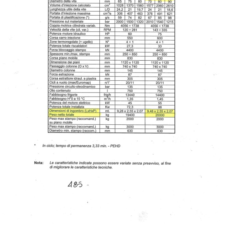 – Sandretto 485Ton Press €. 22,000 Year 1997