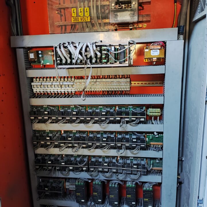 Piano utile 2200 x 1200 mm imbutitura max.700 + controstampo, in buono stato, 2 piani ceramiche scaldanti (superiore & inferiore).